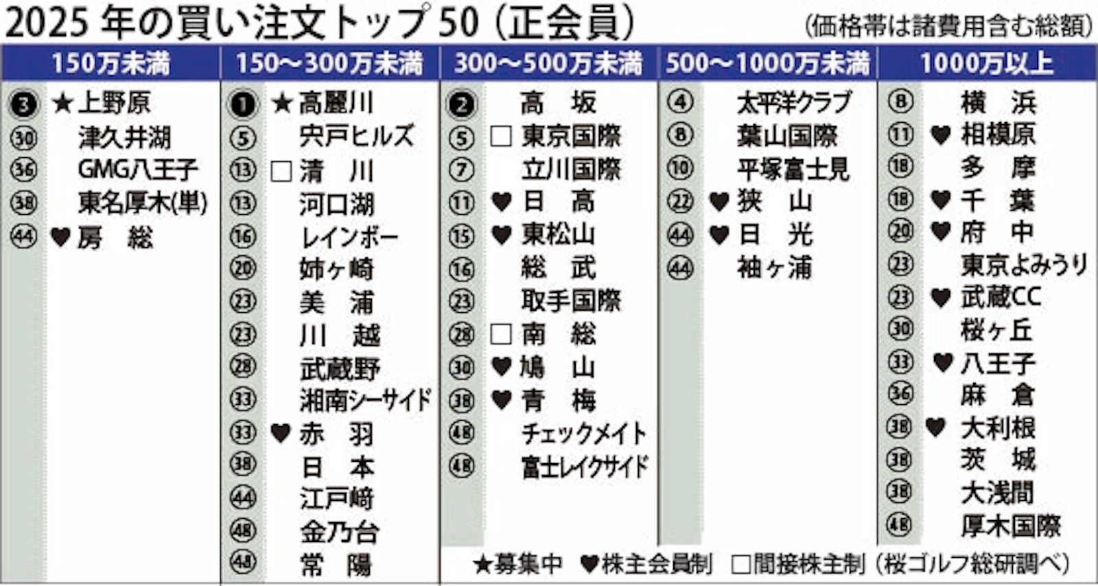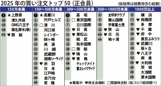 PICKUP- トップ3は埼玉の高麗川、高坂、山梨の上野原。太平洋、東京国際、宍戸ヒルズ、立川国際が続く